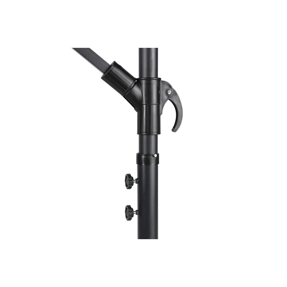 terwijl het stalenframe stabiliteit biedt, zorgt de kantelfunctie ervoor dat de parasol gemakkelijk te verplaatsen is naar de plek waar schaduw nodig is. Door het hangende ontwerp is het gemakkelijk om je tuin te stijlen en gezellig te maken, hang er wat lampjes onder en je tuin is gelijk een stuk sfeervoller!