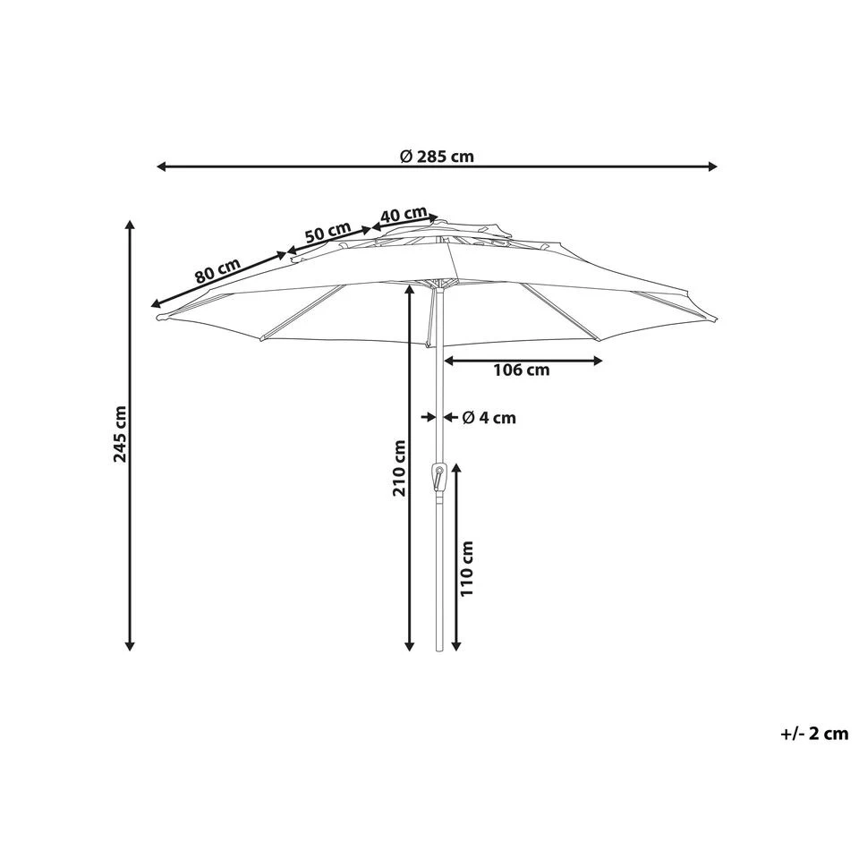 Extra informatie: Het aanbevolen gewicht van de paraplu is 50 kg, de parasols zijn ontworpen voor een windkracht tot 25 km/u. Draai het mechanisme niet verder door in dezelfde richting na het volledig openen of sluiten. Dit kan het mechanisme beschadigen.