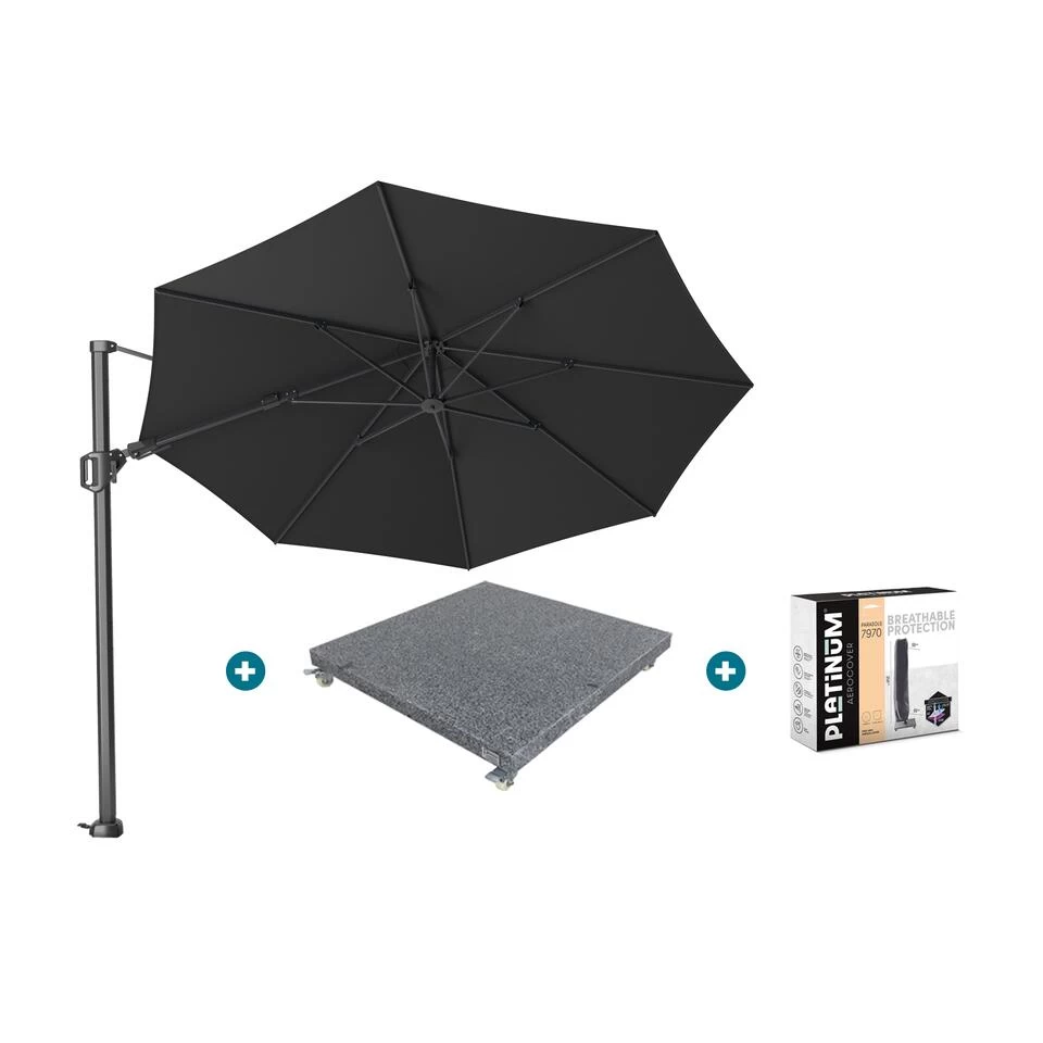 Platinum Challenger T2 3.5m. rond parasol Faded black met voet en hoes