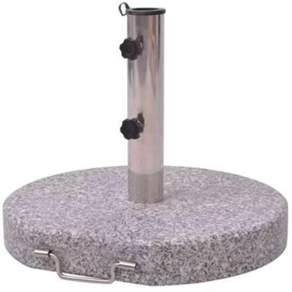 Deze parasolstandaard heeft een gewicht van 30 kg. Hij heeft een roestvrijstalen buis en handgreep. De standaard zelf is gemaakt van gepolijst graniet in combinatie met roestvrij staal. Aan de onderkant kun je wielen monteren en aan de zijkant een roestvrijstalen handgreep, voor eenvoudig transport. Deze voet is geschikt voor parasols met een diameter tot 3 meter. Met behulp van de zijschroeven kan je de parasol in de parasolstandaard bevestigen. De levering is inclusief 2 adapters voor parasolstangen met een diameter van 38 en 48 mm.