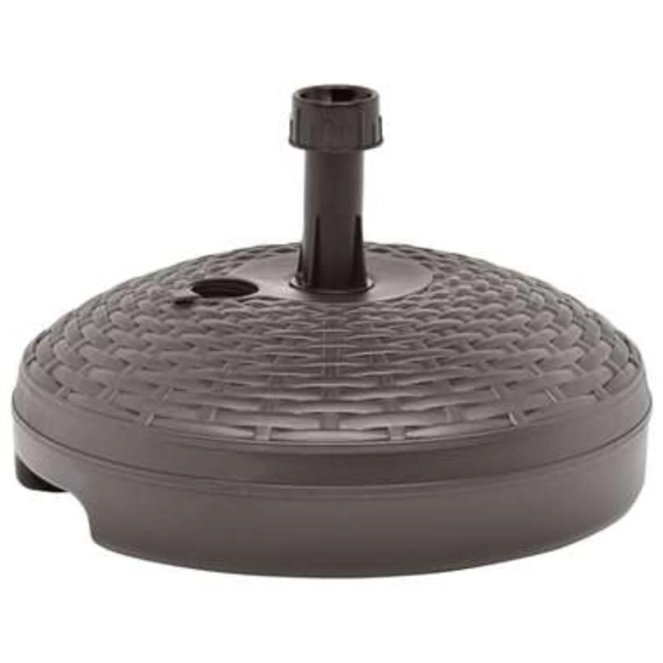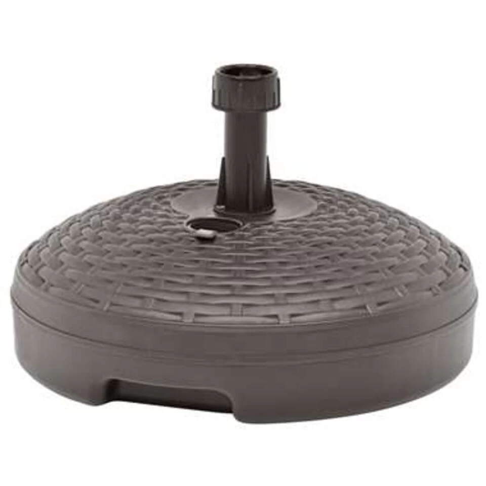 Deze parasolvoet met rattan patroon is ontworpen om te worden gevuld met water of zand. Hij dient als een stevige en stabiele basis voor je parasol.