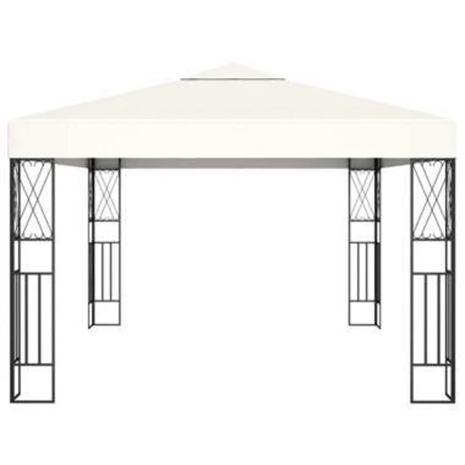 De ventilerende luifel zorgt ervoor dat de zon en regen het plezier niet bederven tijdens familiebijeenkomsten, barbecues, middagpicknicks en verjaardagsfeestjes. Het prieel heeft een stevige stalen constructie met decoratieve kruisvormige details en een polyester dak. De luifel is eenvoudig te bevestigen aan het stalen frame.