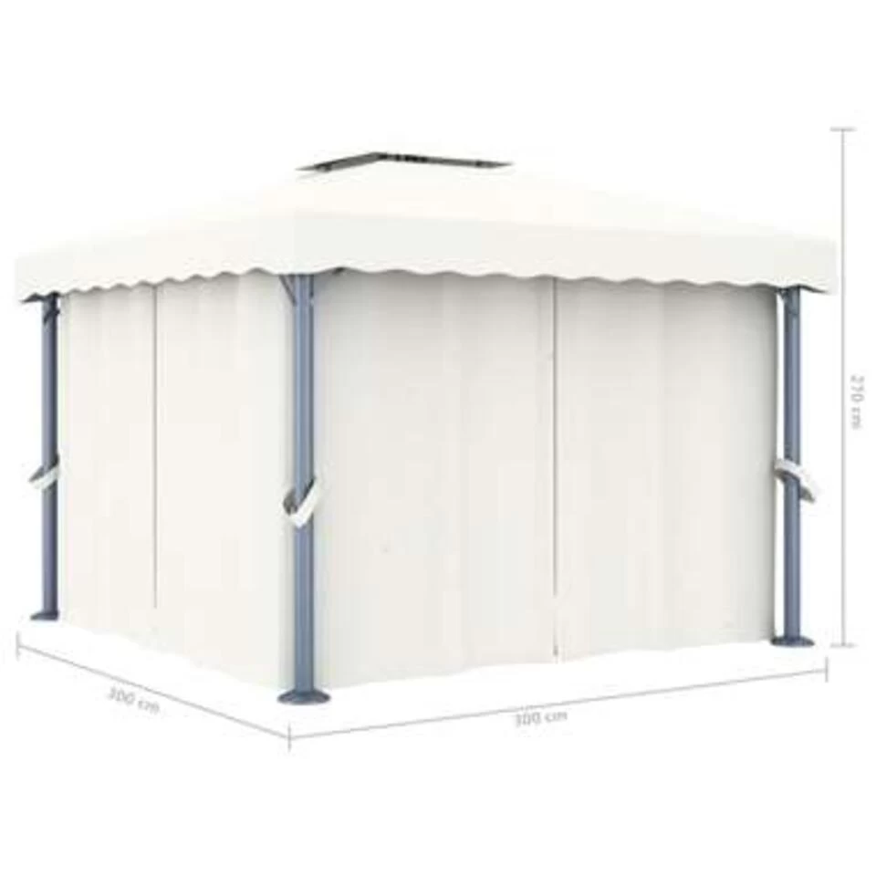 Het is ontworpen om een koele plek te bieden bij tuinfeesten, familiepicknicks, barbecues en andere sociale bijeenkomsten. Het is gemaakt van een aluminium paal met een gepoedercoat stalen steunbuis, waardoor het zeer stevig en duurzaam is. De luifel en zijwanden zijn gemaakt van hoogwaardig polyester met PA-coating, waardoor je wordt beschermd tegen schadelijke uv-stralen en milde regen. Een goed ontworpen, 2-laags dak zorgt voor voldoende luchtstroom. Bovendien zijn er gordijnen en gaasschermen inbegrepen voor volledige bescherming, waardoor je extra privacy hebt terwijl je vervelende muggen en andere insecten weghoudt. Klittenband is inbegrepen voor eenvoudige bevestiging.